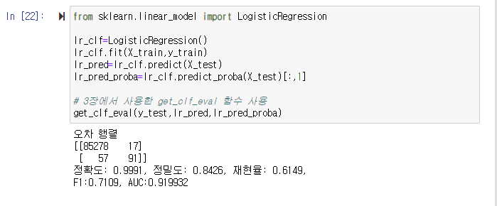(여기서는 분류한 결과에 대해서 confusion matrix을 반환해주는 get_clf_eval함수를 Functions.ipynb에 저장해 두었습니다.)